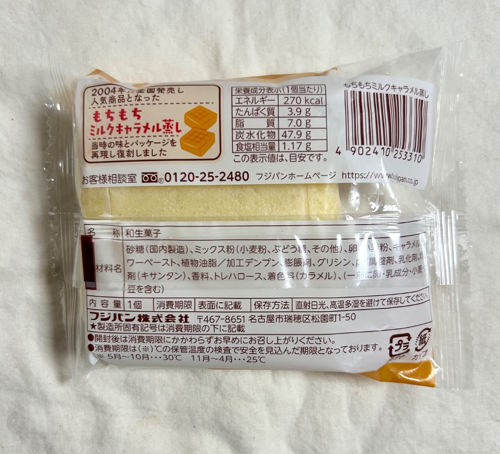 「ミルクキャラメルクリームを練り込んだ、もちもちとした食感の蒸しパンです。」