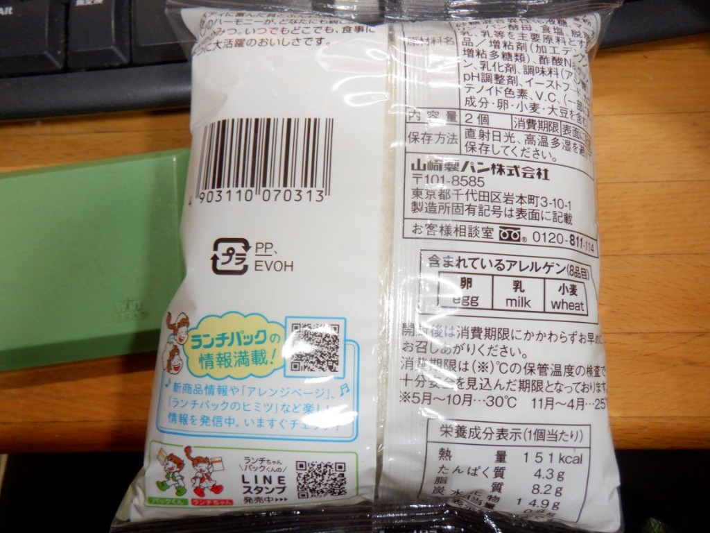 ってことで、嫁の目を盗んでこっそり買い食いしたw、玉子入りのランチパック。