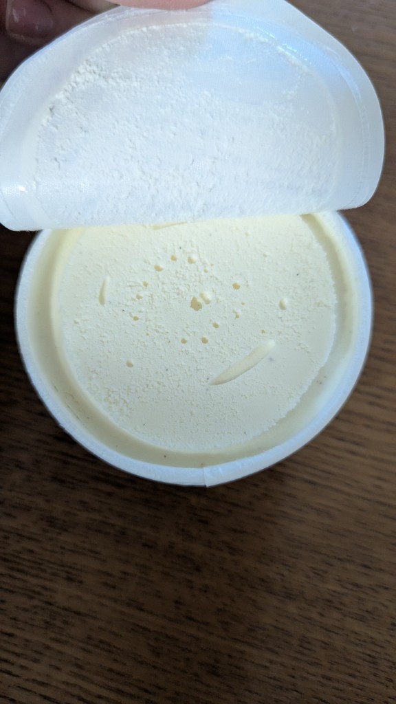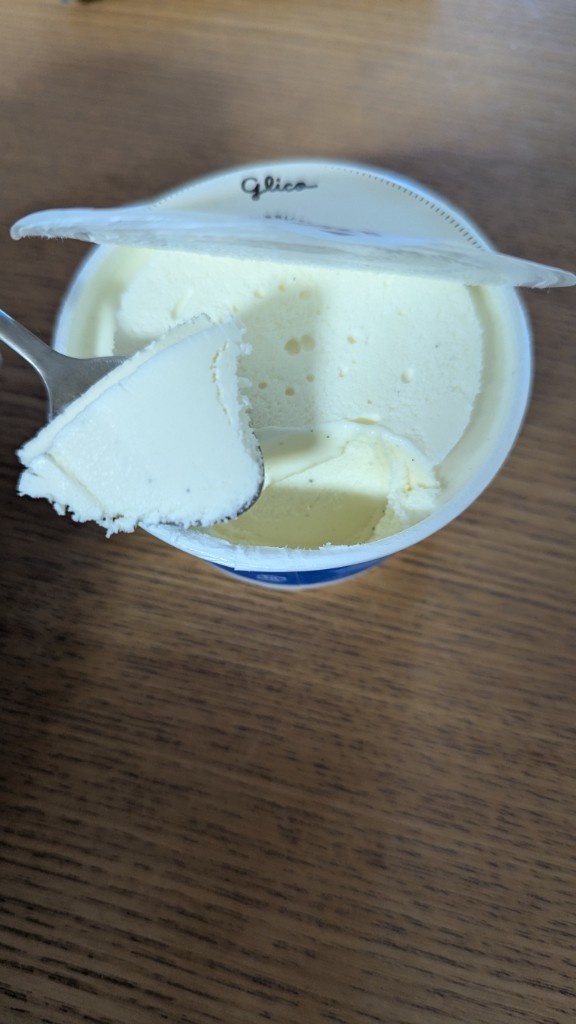 ラクトだから、冷凍庫から出したてはややシャリッともしてるけど、すぐになめらかになり、バニラビーンズもたっぷり入ってて、ちゃんとバニラの風味もあるし、たまごの味もします。