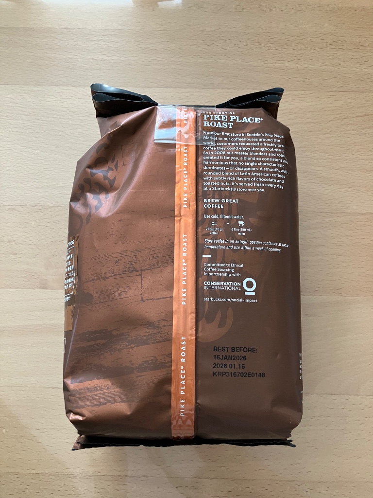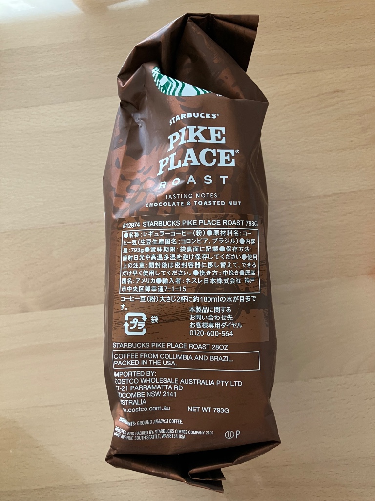 STARBUCKS パイクプレイスロースト 793g/2,688円(税込) コストコのセールで上記表示価格より 540円引になっていたので 試しに購入してみました 「パイク プレイス ロースト」とは スターバックスの1号店がある シアトルの地名なのだとか スターバックスを代表する珈琲を とゆう想いから名付けられたそうな この珈琲、兎に角香りがすごくよくて 毎日インスタントは飲んでいるのですが 同じ珈琲とは思えない ココアや炒った…続きを読む