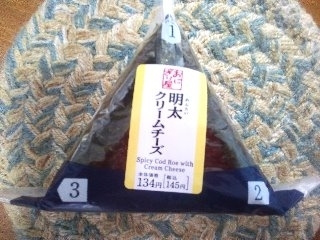 海苔パリパリ手巻タイプがコンビニで買う利点だと思い、燻製たらこも気になりつつ・・159円の大きな唐揚げマヨの誘惑を振り切りクリチを選択。