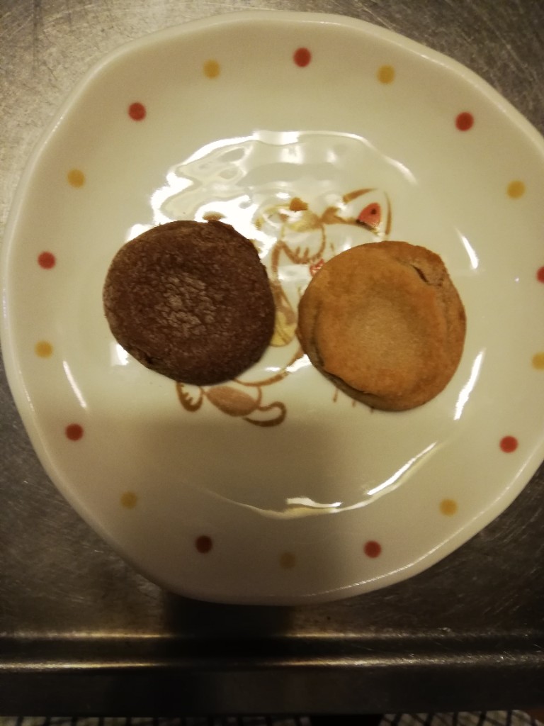 ビター過ぎないココアクッキーを食べていくと、ゴロッとしたチョコが出て来て、口の中で一気にココア味が濃く感じられて美味しい。