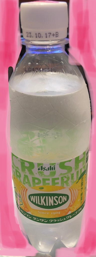 グレープフルーツテイストのウィルキンソン。強炭酸らしく喉にピリッときます。グレープフルーツ感は、飲んでいる時はあまり感じませんでした。でも、飲んだ後に舌先に残る苦味で感知(笑)香りも、ボトルに鼻を近付けてくんくんするとしっかりグレフルの香りがします。