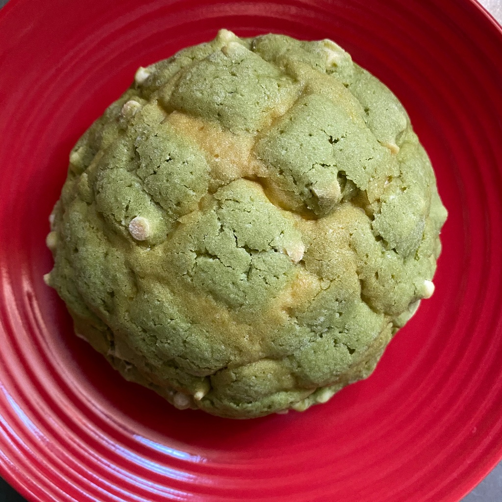 メロンパンのビスケット生地が抹茶味です。