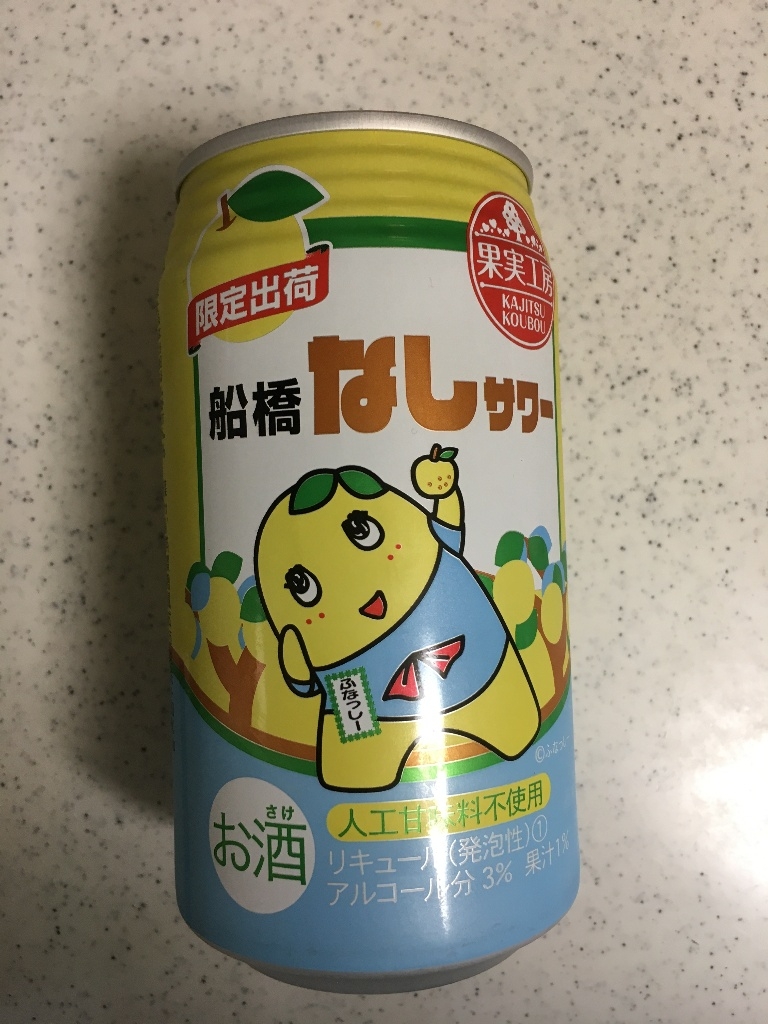 『船橋なしサワー』は梨果汁が0.5%入っている。果汁量のわりに梨の香りがすごいが、味自体は梨をあまり感じない。