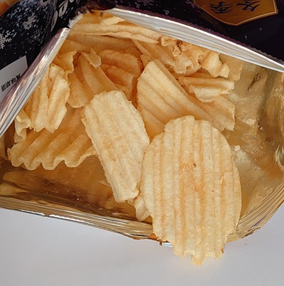 開ければ厚切り波型カットのポテトチップスがお見え。