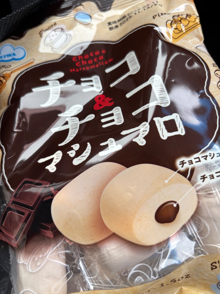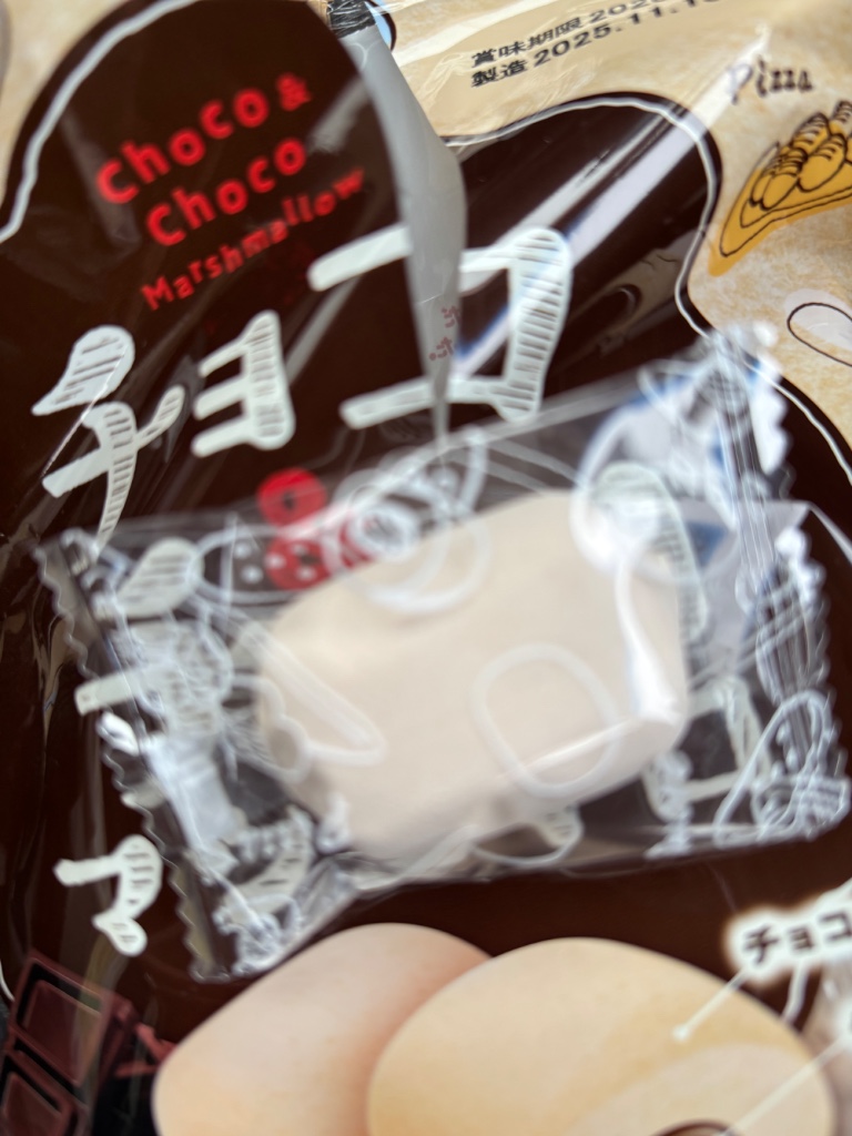 マシュマロ自体にもチョコの風味があるのは珍しいなと思い、手に取りました。ほんのり茶色いマシュマロが個包装になっていて食べやすいです。開けると、ふわっとチョコの香りです。
