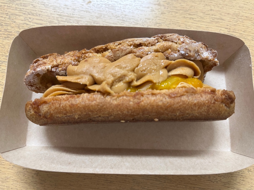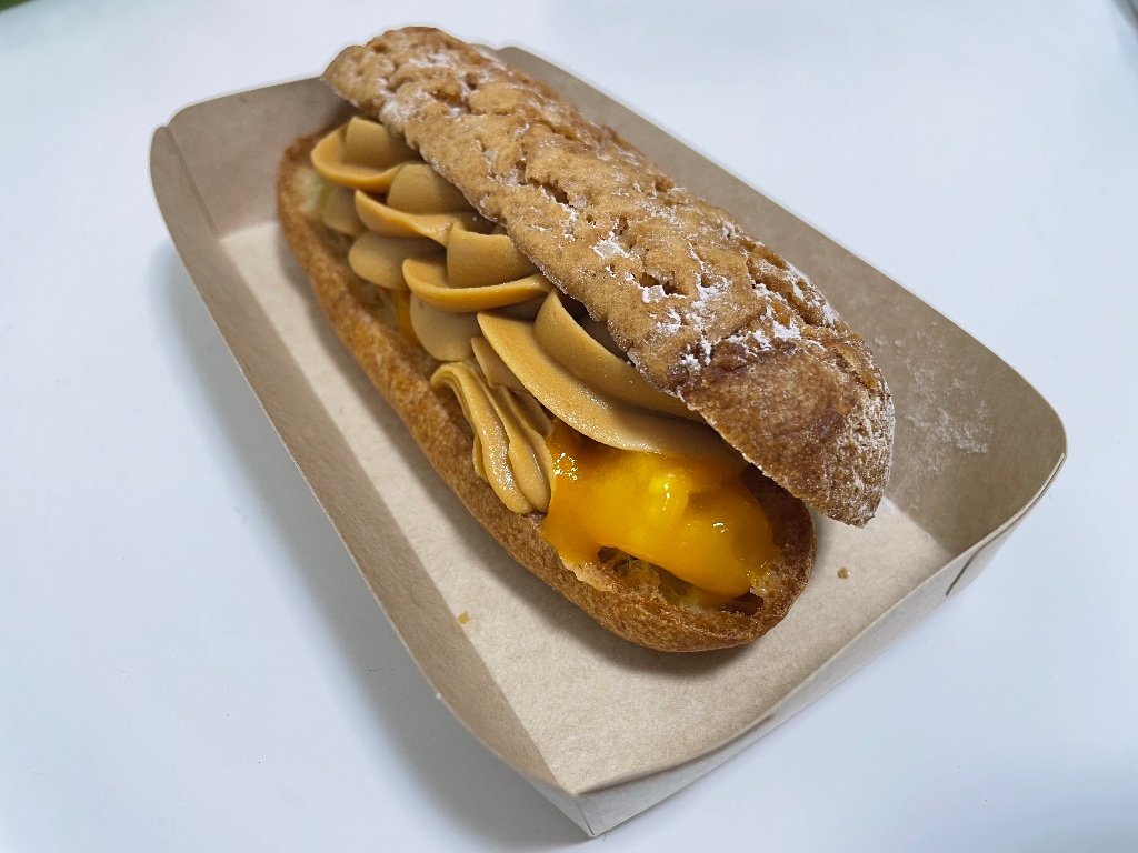 エクレアはゴツゴツした歯切れ良い皮に甘酸っぱいマンゴーと濃厚でほろ苦なキャラメルクリームがサンドされています( *´艸`)