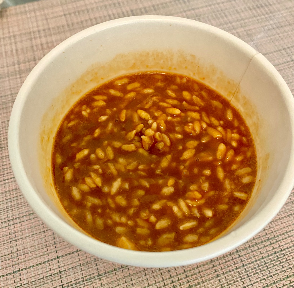 米はお湯を掛ける前はあられっぽく、本当にカレーライスになるのかねと思っていたが、お湯を注いで5分待つだけできちんとカレーライスになったので驚いた。