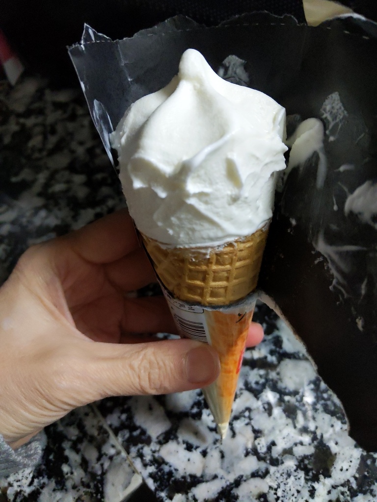 ただコーン状にして食べるとなると、ゆっくり味わうというより、溶けないように急かされて食べる感覚が勝って、ミルキー感を味わう余裕が減ってしまったように感じます。