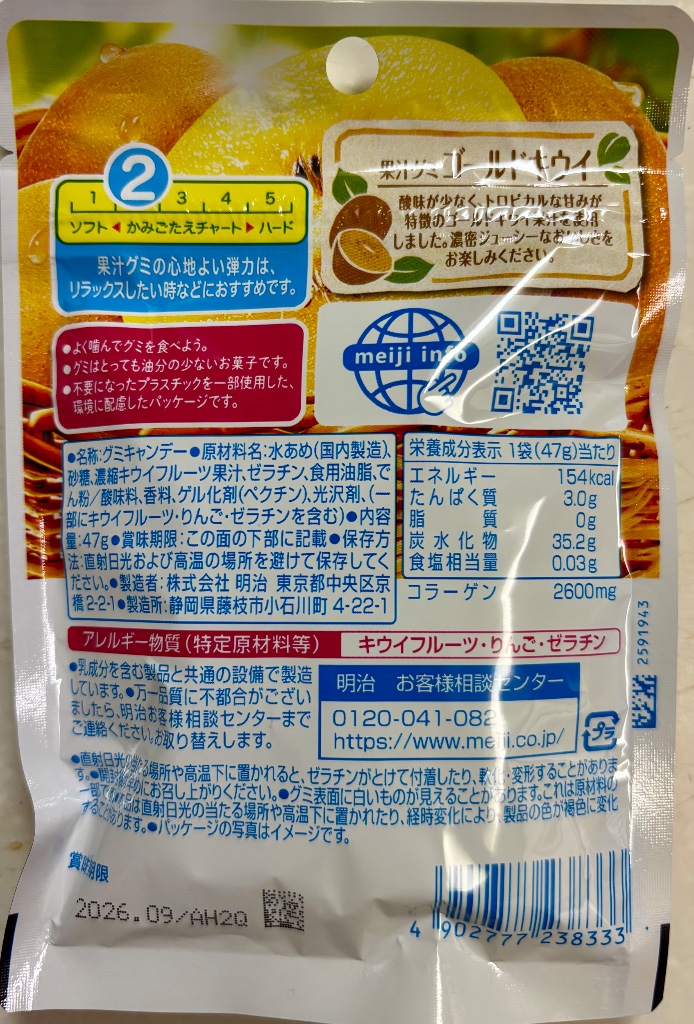 グミでも、同じかな❓と噛んでみると…。キウイの甘味が噛むたびにジュワジュワ溢れ出す。