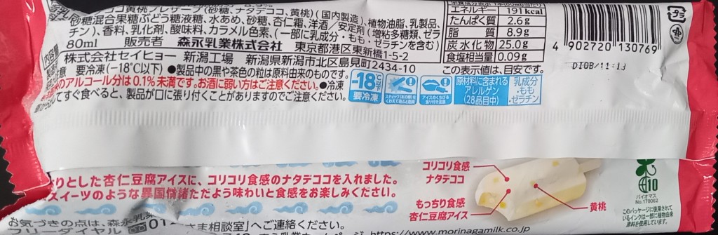 杏仁豆腐味のアイスかー。たまにあるけど食べたことないなー。なんか薄そうだし(←また偏見)ん、待てよ?ナタデココだと!?ナタデココとか大好きだけどもアイスにナタデココ!!想像できない…よし、ならば買ってみよう!