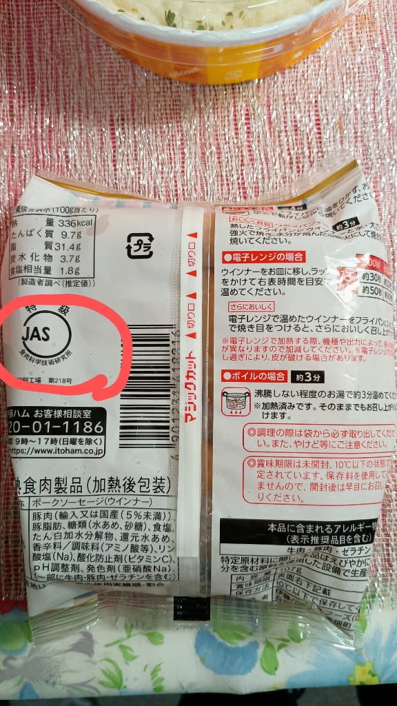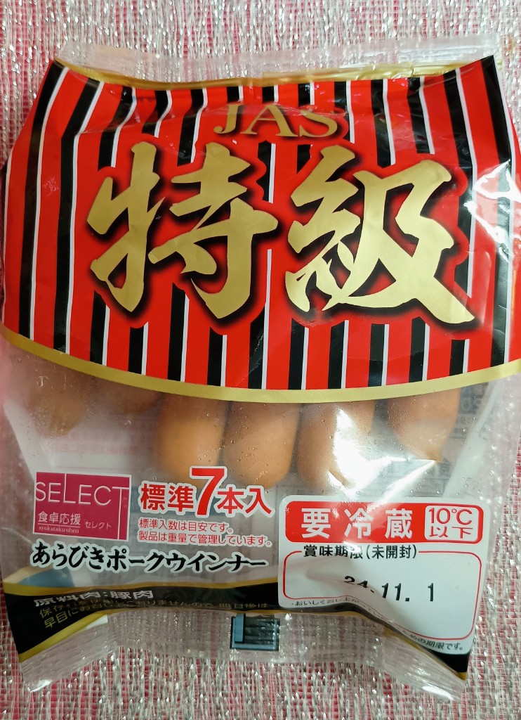 原材料はアルトバイエルンと同じで、天然腸の代わりに人工腸を使用したJAS特級ウインナー。