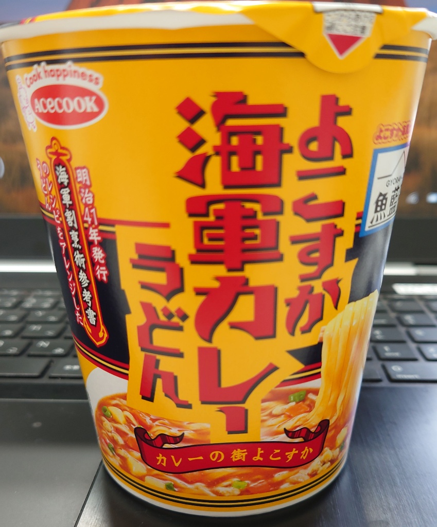 エースコック よこすか海軍カレーうどん 横須賀の海軍カレーの名店「魚籃亭」監修のカップうどんです。 価格は198円 結構さっぱりしたカレーうどんです。 底にルーが溜まることもなく最後まで飲み干しました。