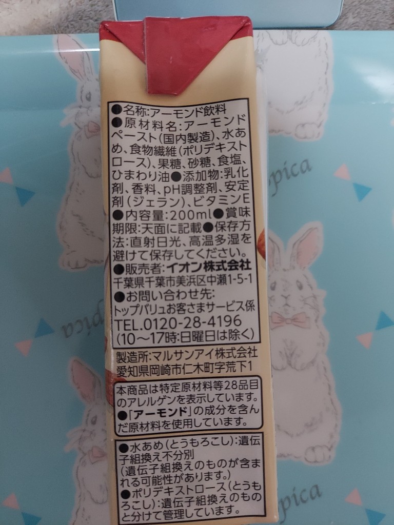 | 原材料表示 | アーモンドペースト(国内製造)、水あめ、食物繊維(ポリデキストロース)、果糖、砂糖、食塩、ひまわり油【添加物】乳化剤、香料、pH調整剤、安定剤(ジェラン)、ビタミンE |
