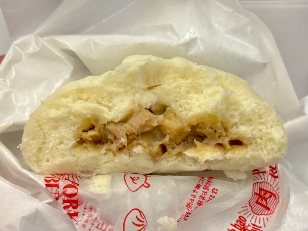 皮はふっくら、中の具材はお肉やタケノコの食感が感じられていいですね♪私は、肉まんにはたけのこが入っていないと嫌なので(シャキシャキ食感が好き)入っていて良かった〜😃
