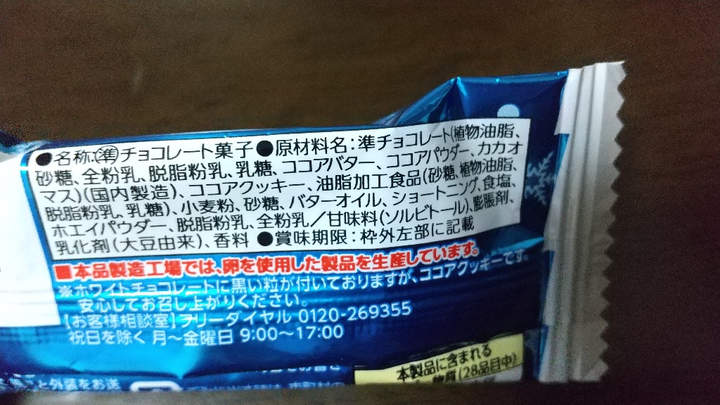 表面のチョコがホワイトチョコになり、中のクッキーはノーマルと一緒です