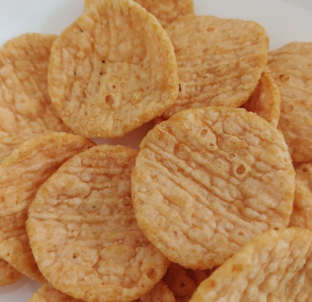 食感は、焼きせんべいのようなかたさの揚げえびせん!サクサク☆カリカリ★