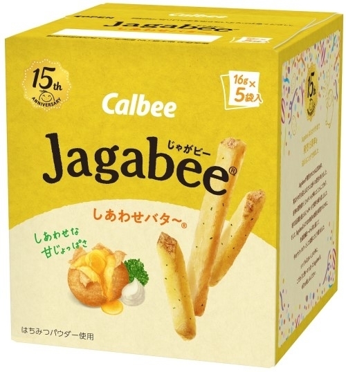 カルビー ジャガビー しあわせバター 個包装で5袋入り。