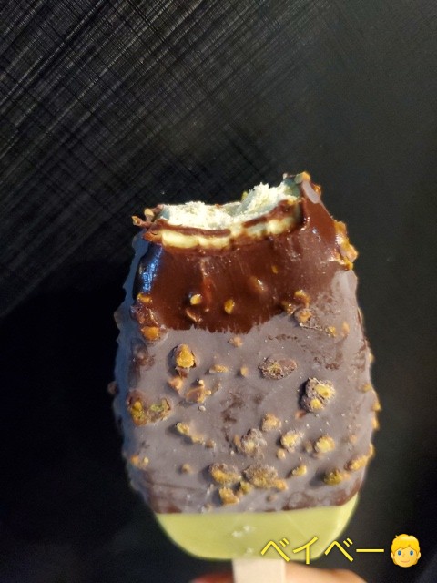 アイスクリーム、チョココーティングに予想以上のピスタチオが入っていたと思います。