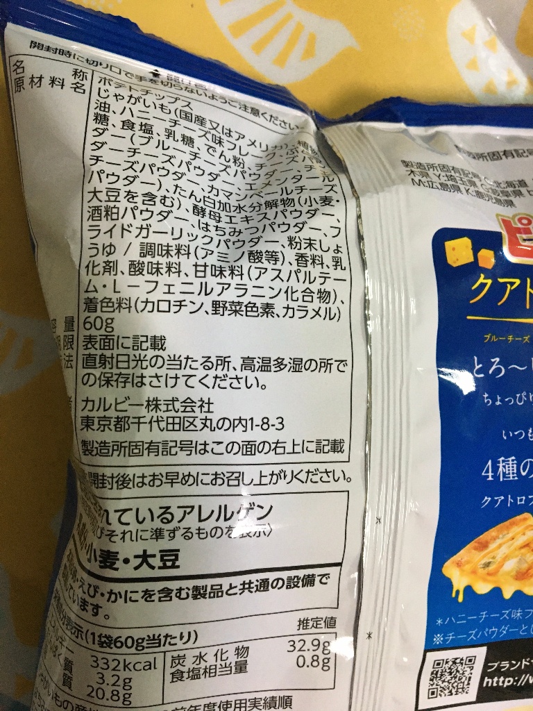 原材料にハニーチーズとあり、甘いチーズ味になっています。