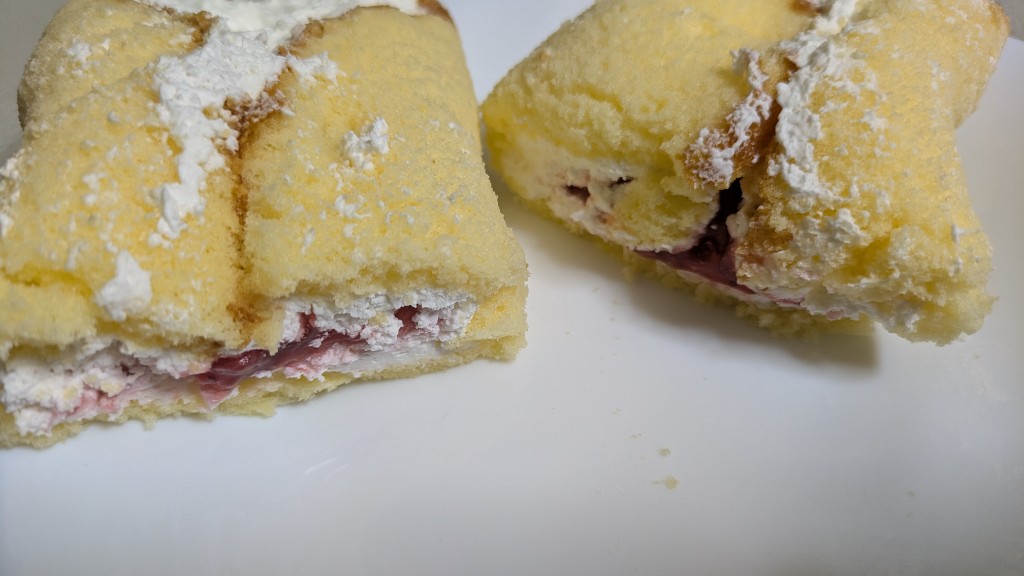 コンビニ限定でなくても、苺3粒入っていました。今回はどれも大きめでフレッシュな酸味のある瑞々しい個体。甘さのあるスポンジやホイップとの総合的なバランスは素晴らしい!