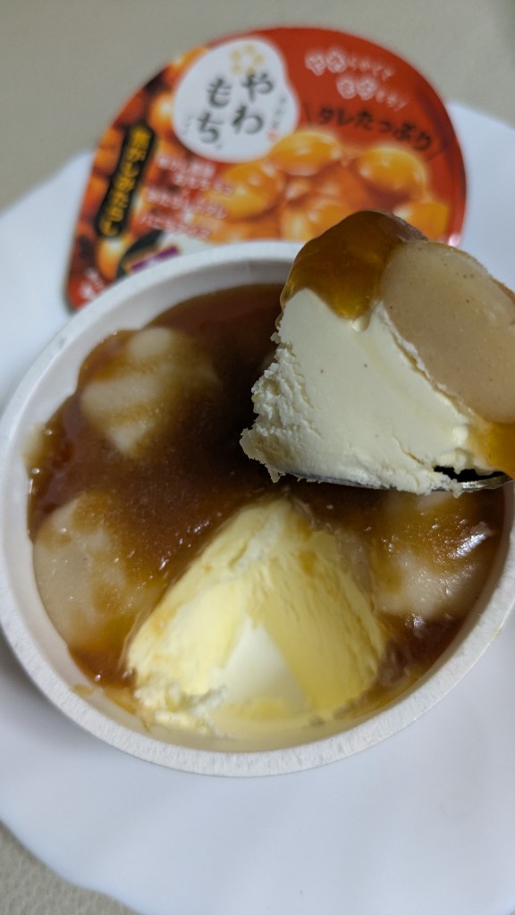 やわもちシリーズは毎度のことだけど餅がガチガチなので、少し常温に置いておいて…ってしている間にもうみたらし層溶けてきてる(゚o゚;;ので少し硬いまま食べた。みたらしソースが甘さもありつつも、ほぼ塩っぱい。がしかし、バニラアイス甘ーい!だから、結果すんごくいい塩梅。これはなんぼでもいける。クセになる。しかし餅がお腹に溜まるので、餅なしバージョンも出して欲しい。がしかし、餅があってこそのみたらし団子感でいいのか?とか思ったり。どちらにせよ、すんごくみたらし団子でとっても美味しかった。みたらし団子好きな私は大満足、今すぐにでもリピしたいお品でした。... 続きを読む