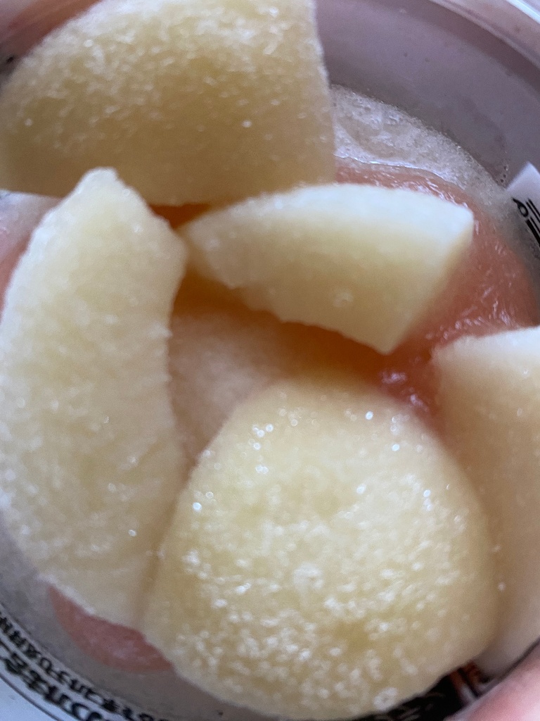 ゴロゴロと桃のカットがトッピングされて、桃好きなのでアイスの割りにお値段高めですが、やっぱり購入してしまいます。