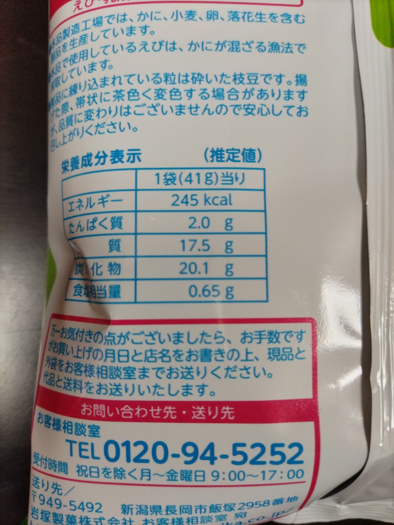 | メーカー | 岩塚製菓 | カロリー | ---- |