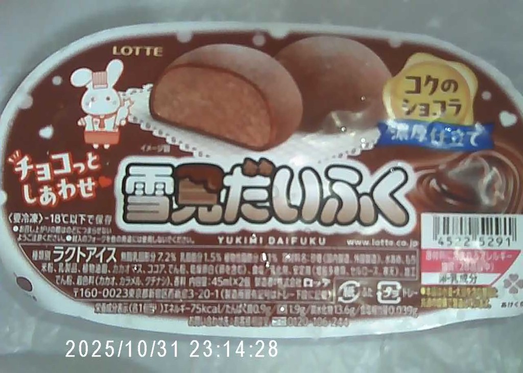 雪見だいふくといえば真っ白な求肥に包まれたバニラアイスですが、これは、ココアの求肥にチョコアイスが合いますが私的には通常の雪見だいふくの方が好みです
