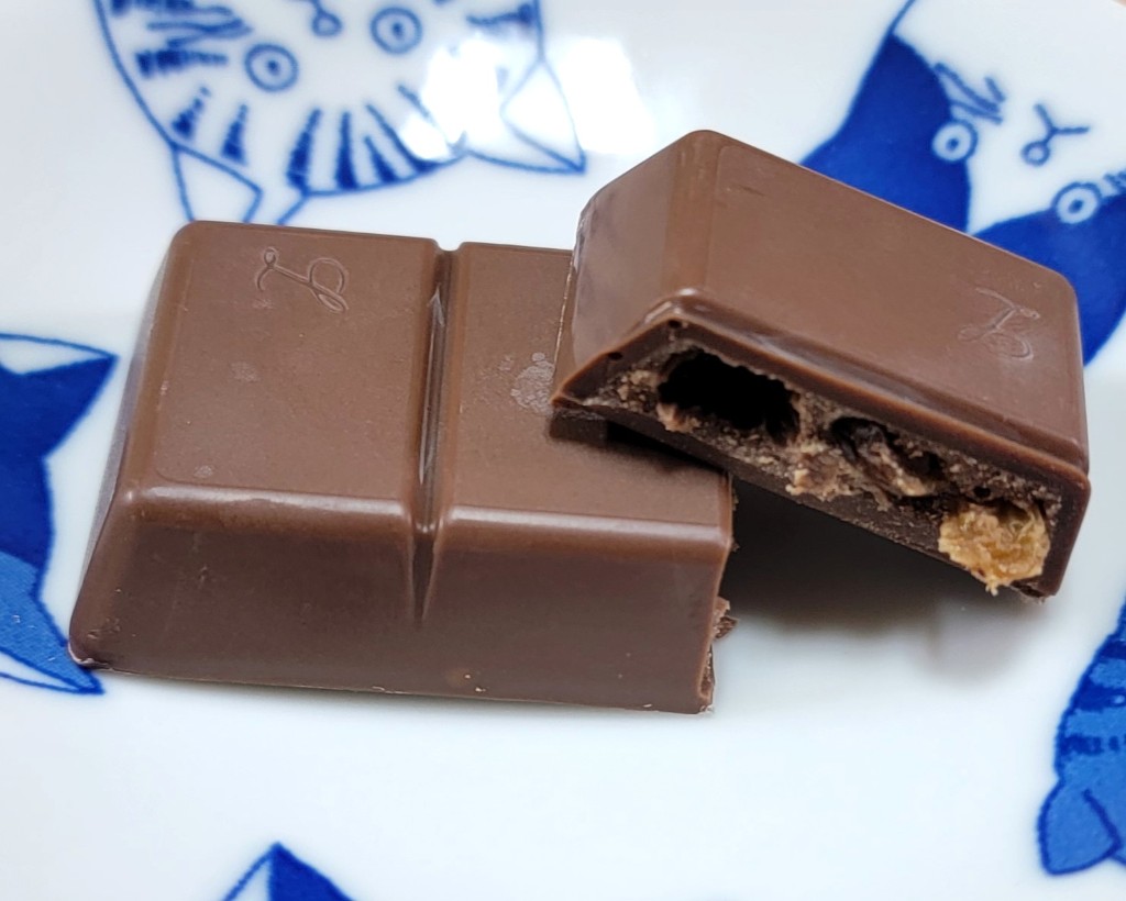 ほんのり香る洋酒が美味しさとミルクチョコレートほど甘くなく、絶妙な甘さとカカオの渋みもあって大人な味わい美味しい♥