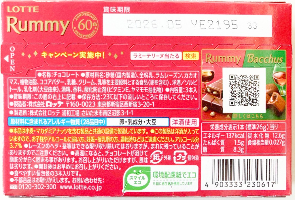 冬季限定!ラミーとバッカスあるけど個人的にラミーチョコが好き!