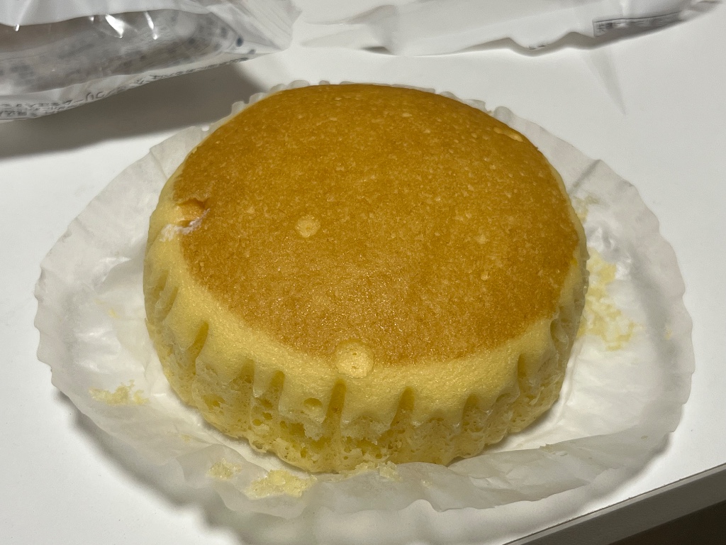 開けてみて意外だったのが、ふわしゅわスフレパンケーキ系を想像していましたがたまご蒸しパンのような見た目をしていたこと!匂いもたまご蒸しパン。そりゃカロリー高いわ…と思いました笑たまご蒸しパン大好きなので嬉しい誤算。