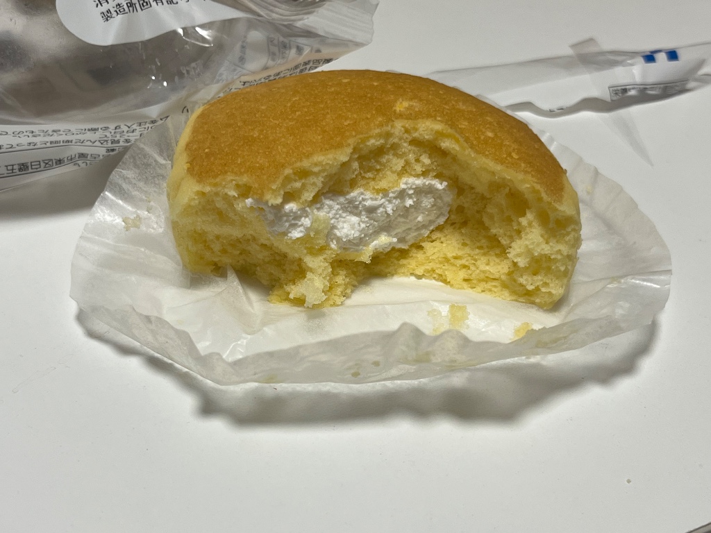 真ん中を割ってホイップ部分を食べてみると、確かにミルクをしっかり感じます!甘さ強めでとっても好み。優しいふんわりとした甘みを求めている方にはくどいかな、と思いますが、甘党なのでこれは期待以上。ちょっぴり固めで、少し油脂感があります。