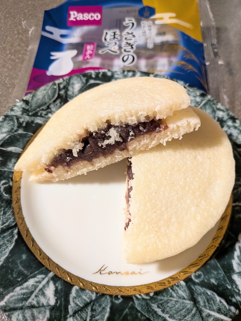 同シリーズのカスタードのあまりの甘みが忘れがたく、こちらの粒あんも食べてみました。あれ、カスタードからは思いもよらない抑えた甘さで逆に…期待はずれ…でも生地の半生感とあんの食感のマッチングはよく、上品なおいしさです。