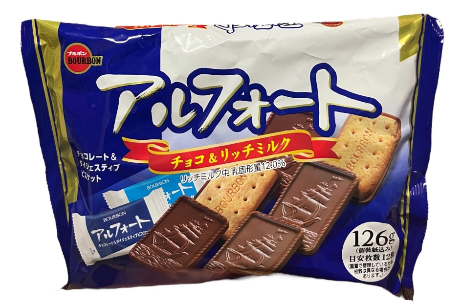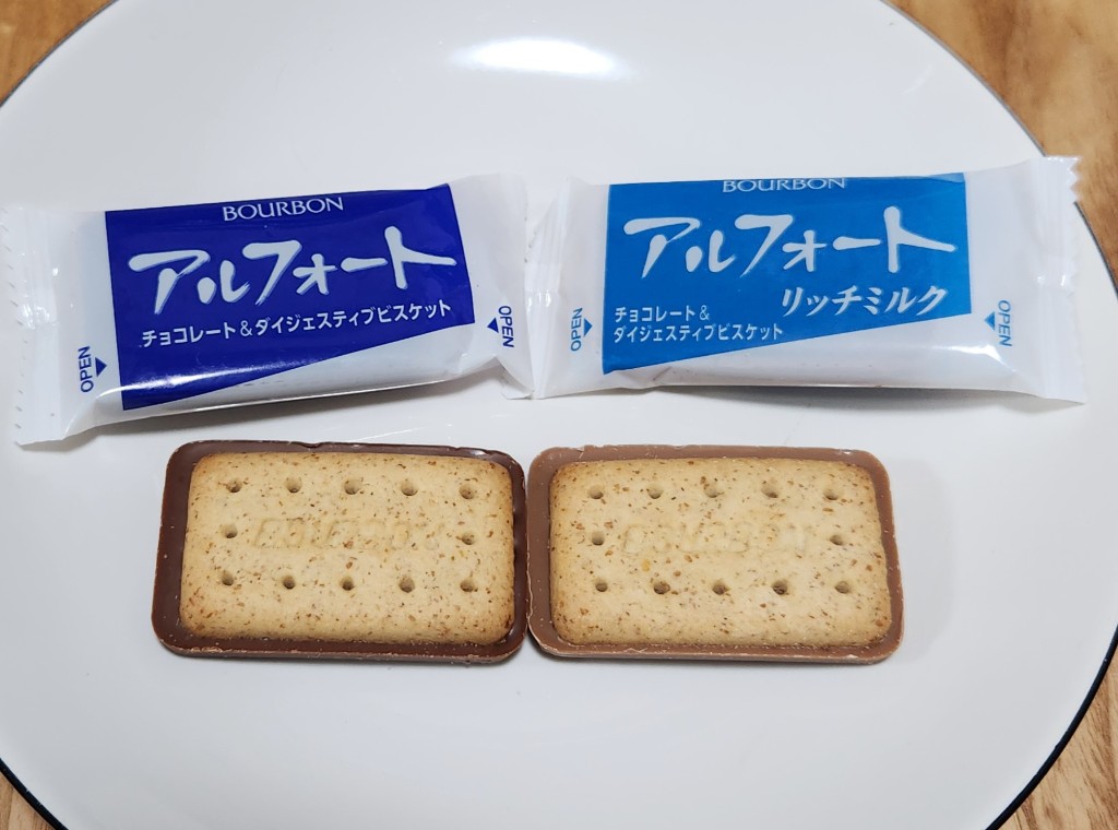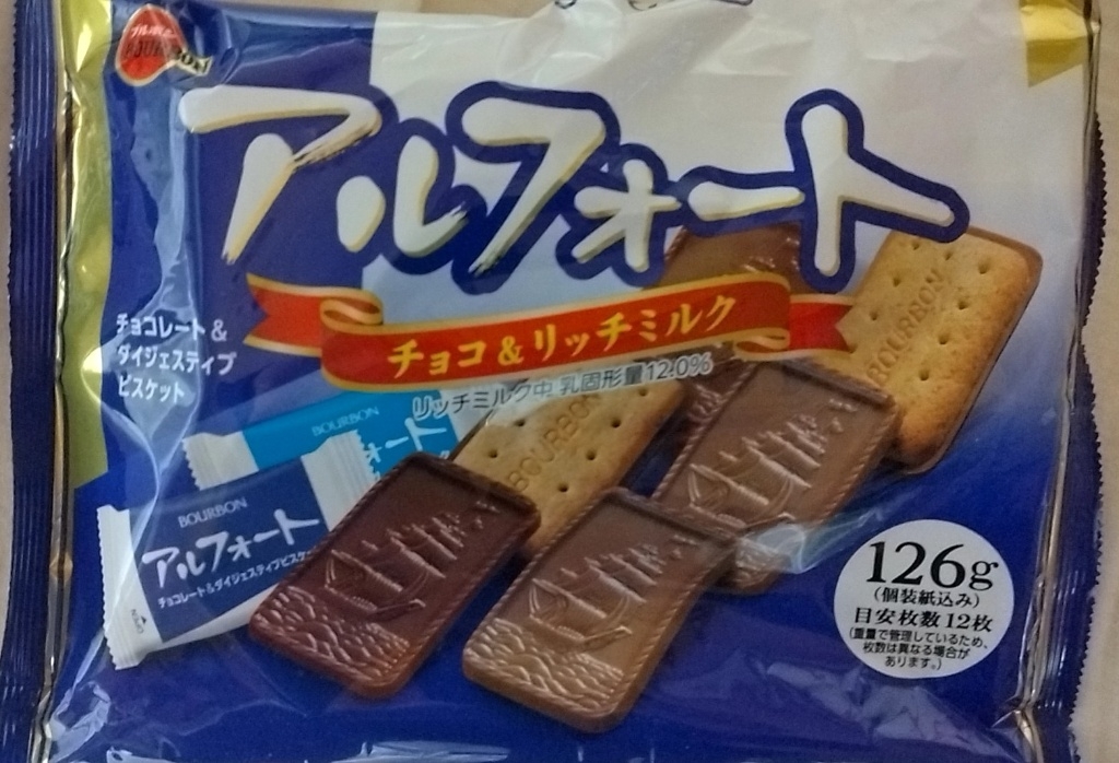 現金のみの激安ドラッグストアコスモスで、ブルボンアルフォートチョコ&リッチミルクを購入し、食べました。