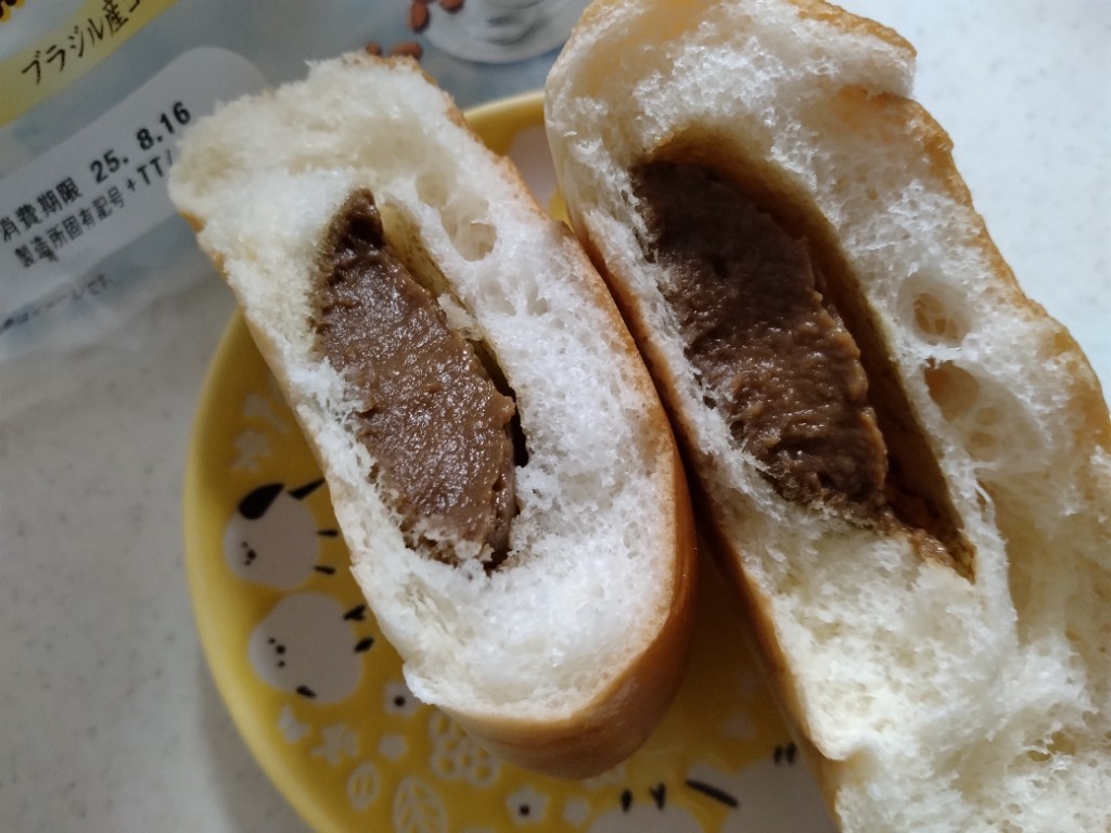 見た目はいつもと同じく、楕円形?のふんわりしたパン。柔らか食感で、中のクリームがほろ苦甘くて美味しい~(*^^*)