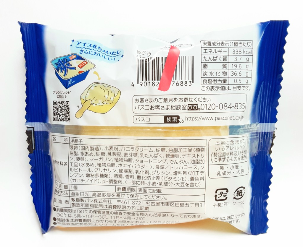 国産小麦の小麦粉を100%使用した、くちどけの良いスフレケーキ生地に、バニラの風味と「爽」のシャリシャリ食感を再現した爽快感のあるクリームを入れて仕上げました。
