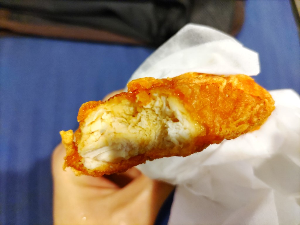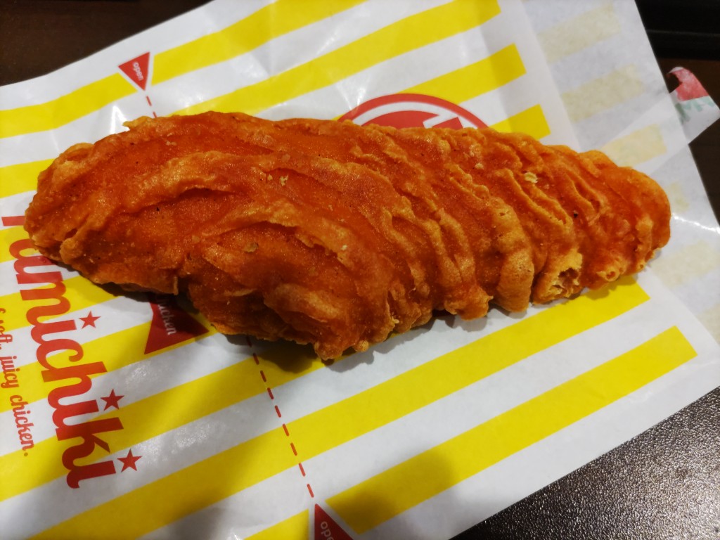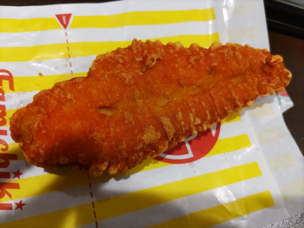 クリスピーな食感のチキンです。中身は鶏胸肉らしくあっさりさっぱり系。 ハバネロだてどれだけ辛いのかと思いましたが結構辛いです。辛いもの好きな私でも辛いと思います。 ビリビリ痺れます。 ファミチキ食べたかったのでさがこちらはジューシーさがないですね。