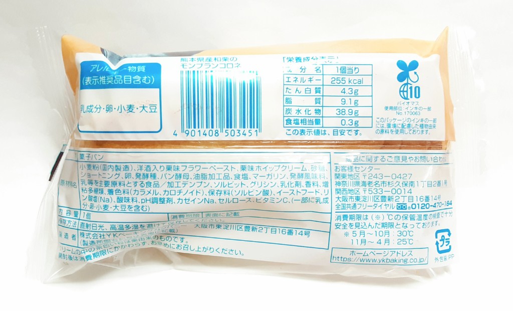 YKベーキング 熊本県産和栗のモンブランコロネ。去年も発売されたこの商品。今年もさっそく購入しました。