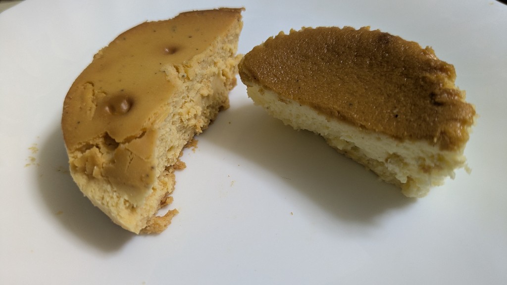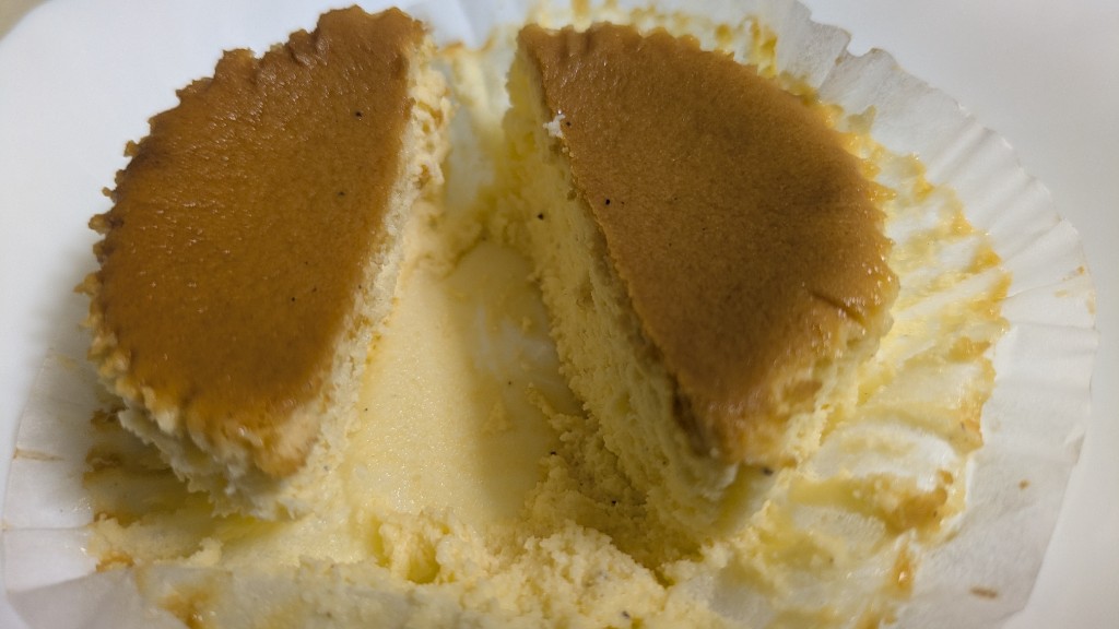 軽い口溶けでかなり美味しいですが、個人的には昔売ってたバスク風チーズケーキの方が食べ応えがあって好きでした。この商品に足りないのは、軽すぎて食べ応えがないってことくらいです。