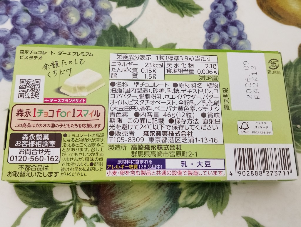 森永製菓 ダースプレミアム ピスタチオ。気になっていたこの商品。やっと半額になっていたので、購入しました。