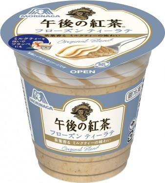 ホワイトチョコチップ入りのミルクティー味のみぞれと、紅茶味ソース入りのバニラアイスの2層が楽しめる、複数の素材が織り成す食感や味わいの変化が特長のパフェアイス。紅茶のおいしさや贅沢感が楽しめる味わいです。