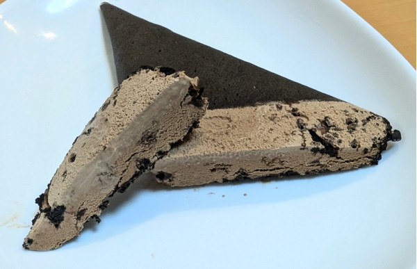 チョコアイスとパキパキチョコをココア入りのもちもちのクレープ生地でつつみ、ココア入りビスケットクランチをトッピングした、冬のごほうびチョコクレープアイスです。