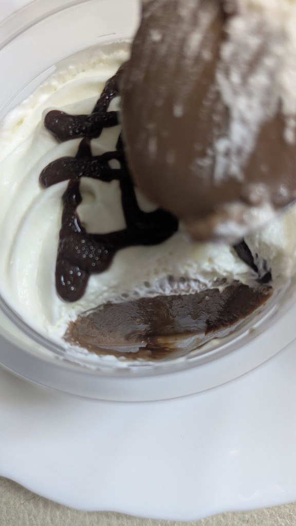 チョコプリンチョコクリームソースホワイトチョコクリームを組み合わせ、チョコを主役とした濃厚でコク深い味わいのプリンです。