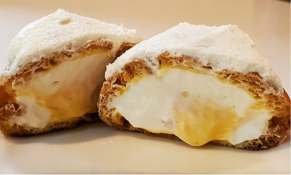 歯切れの良いシュー皮に口どけなめらかなホイップクリームとカスタードクリームを詰めた食べ応えのあるシュークリームです
