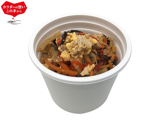豚挽き肉、にんじん、きくらげ、椎茸、豆腐、生姜、春雨など様々な具材が入って、バランス良い仕上がり。