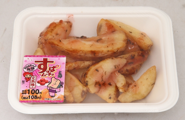 「すっぱムーチョ完熟梅味」の、酸味の中に感じる甘みと旨みを再現。味付のベースには“すっぱムーチョ×岡畑農園 おばあちゃんの梅畑”で収穫した梅干を使用しています。