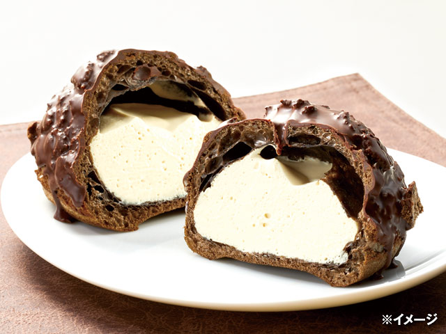 シュー生地はザラメ入りのクッキー生地をのせ、さらにチョコをかけた仕上げ。