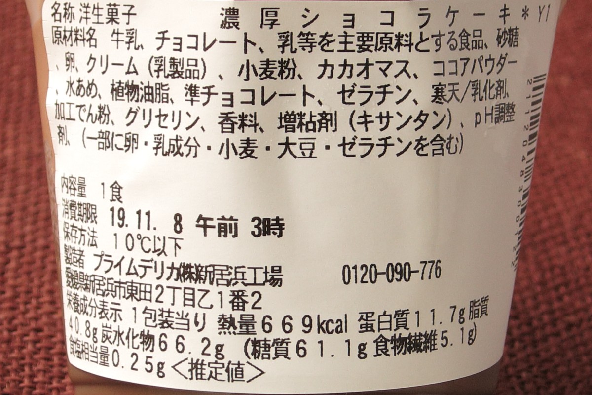 一つめは、ランキング外よりセブン-イレブン「濃厚ショコラケーキ」。